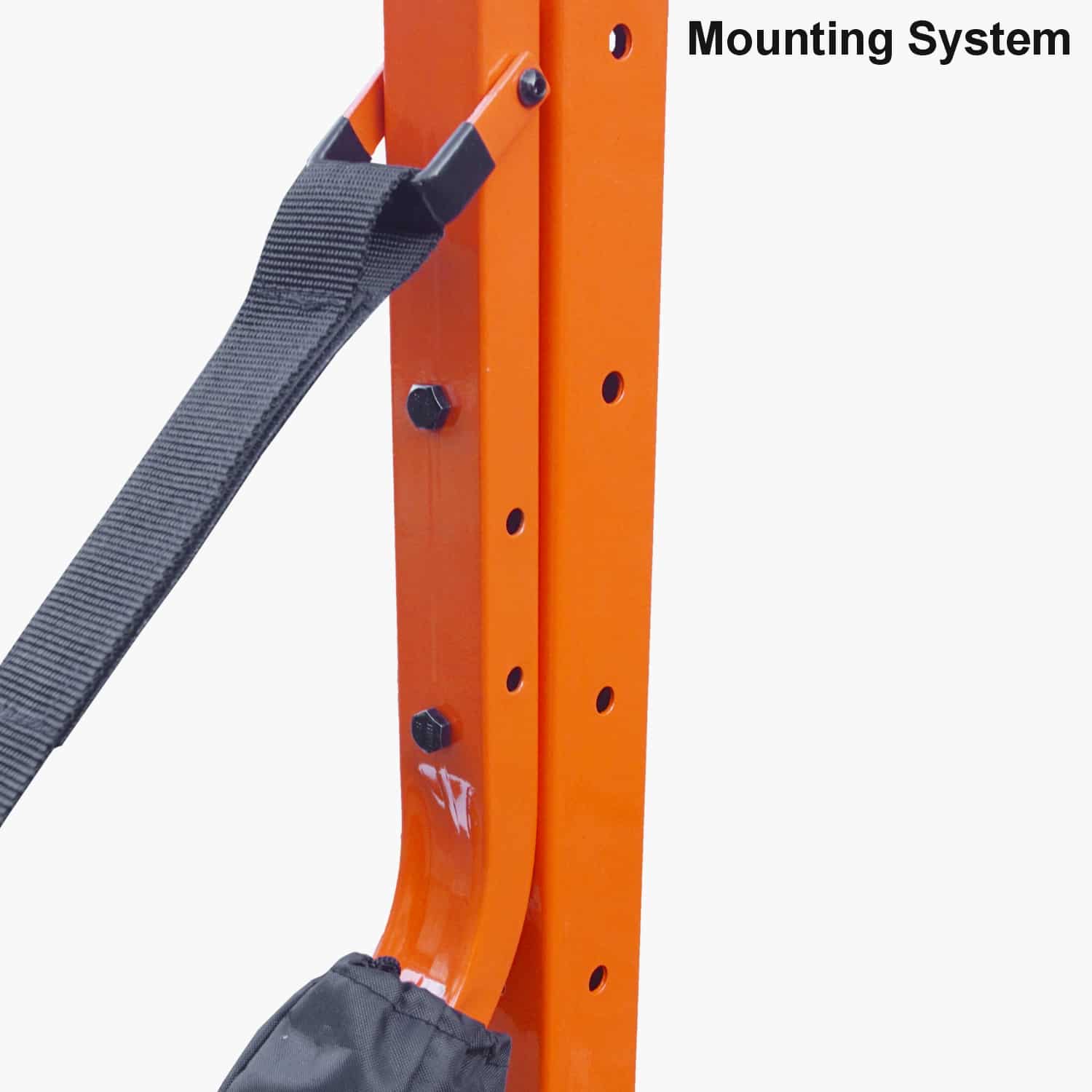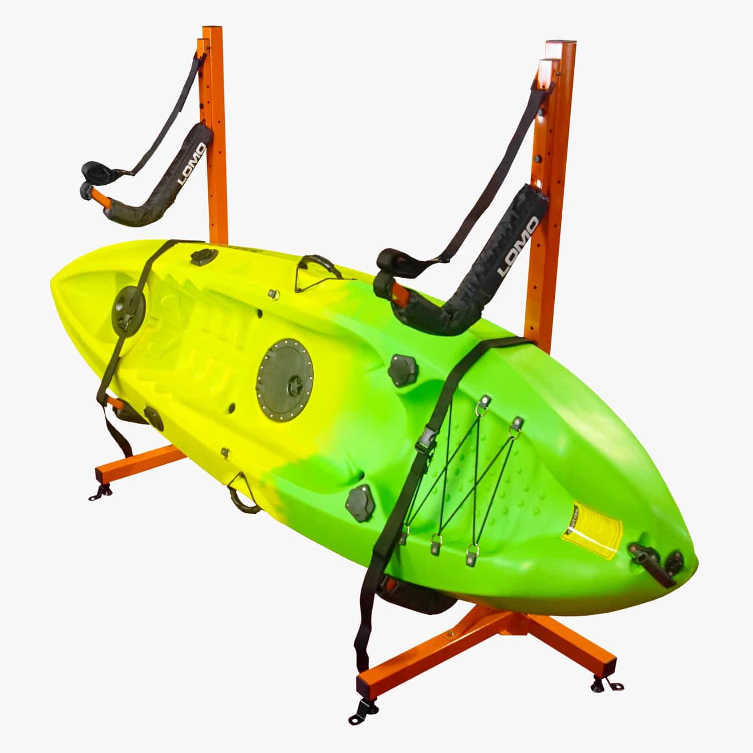 We also included adjustable straps in the design of the arms on our Floor Standing 2 Kayak Rack. This gives peace of mind that once the kayak is in place you can clip the straps to hold the kayak safely in place.